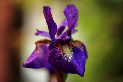 毎年庭の隅でアヤメが数本花をつけます。和服のような艶やかさ、いや和服がアヤメを、ですね。