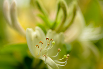 咲き出したスイカズラを撮影するには雨が欲しかったところです。雨あがりで再度撮り直しましょう。
