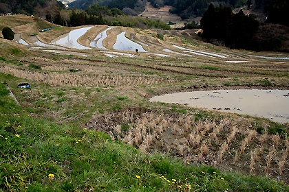 まだ陽が高い時間に大山千枚田に到着してしまいました。先客も居てまた次々と見物の人達がやって来ます。東京に近い棚田として人気があるようです。前回は秋の朝早くでしたからカメラマンだけでしたが、この時期・この時間ではカメラマンはいませんでした。暫く棚田の周りをのんびり散歩する感じで歩き回り、少し陽が傾いた頃に何枚か撮影して帰途につきました。