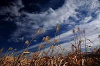 崖上のススキにカメラを向けると雲に光彩が出ていました。ほんの一瞬の出来事でした。