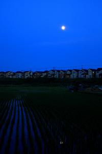 昨日は久しぶりに夕方になっても雲が出ずに晴れ渡りました。真っ赤な夕焼けは見られませんでしたが、陽が落ちた後の青空と満月に近づいた月が綺麗でした。
