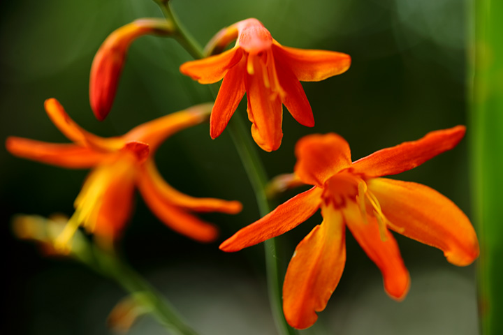 庭ではモントブレチアが咲き揃ってきて、夏~って感じになってきました。この灼熱色を見ると暑さが募ります。