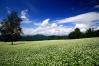 まだ残暑厳しい晴れた日に、広大な奥会津のそば畑を訪ねました。高原を抜ける風は秋を思わせるものでしたが、カメラ・ザックを背負って歩き回ると汗の出る程のいい天気でした。山に囲まれた奥会津では蕎麦の栽培が盛んです。その中でも、この2ヶ所は一面に広がるそばの花が見事です。