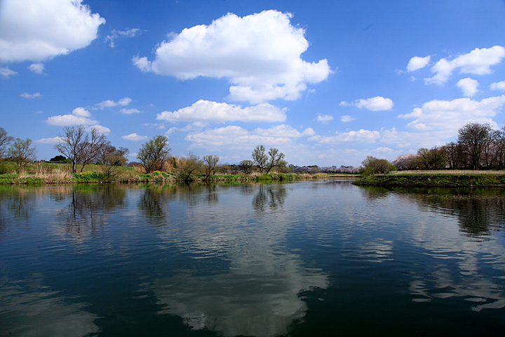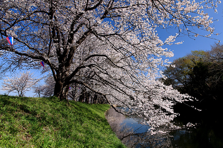 福岡堰の桜並木を始めて訪れました。青空の下、疎水の水面に映る桜並木が美しい春の風情を見せてくれました。霞む筑波山を遠目に小貝川もゆったりと流れ春を感じさせてくれます。