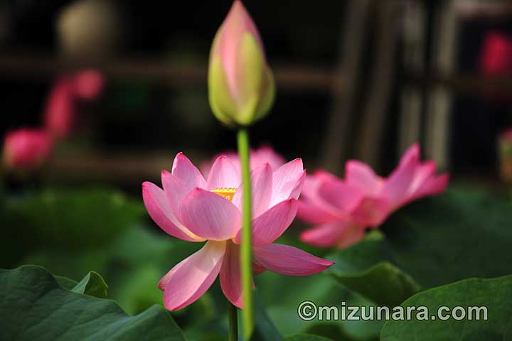 どんよりとした梅雨空の朝早く今年も千葉公園のハス池を訪ねてみました。弱い光の中で咲く、開きかけで赤味の濃い花から開いて爽やかなピンク色を見せる花まで、古代ハス単品種の花畑を楽しんできました。